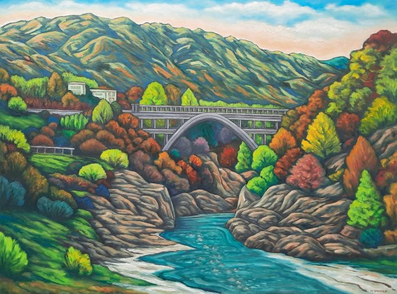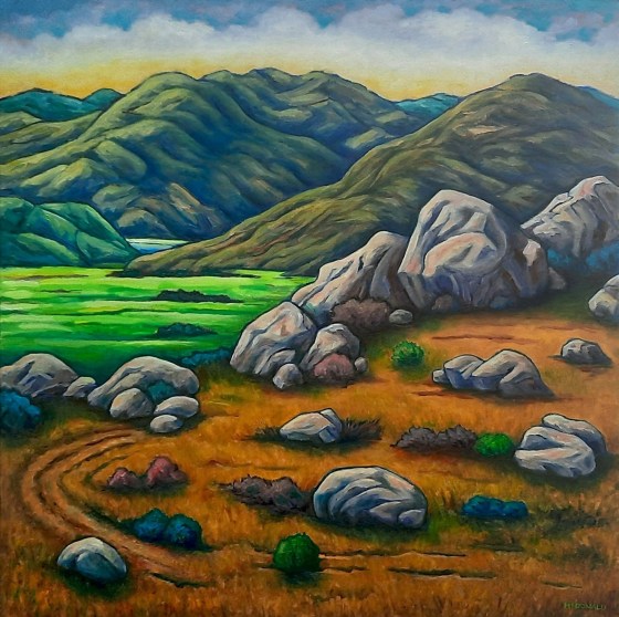 “Civilisation exists with nature’s consent, subject to change without notice” (Will Durrant). Second painting of this view, the turnoff to…