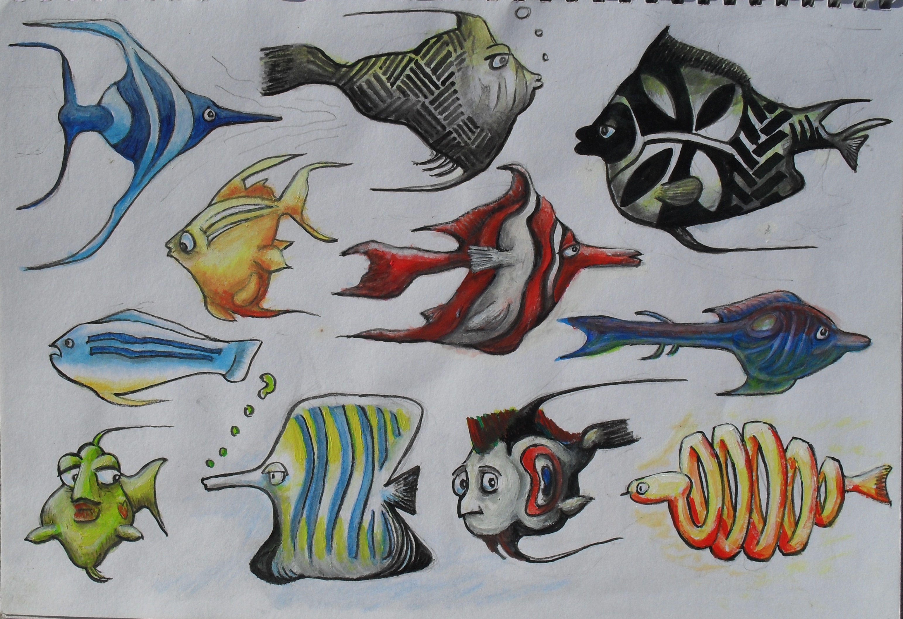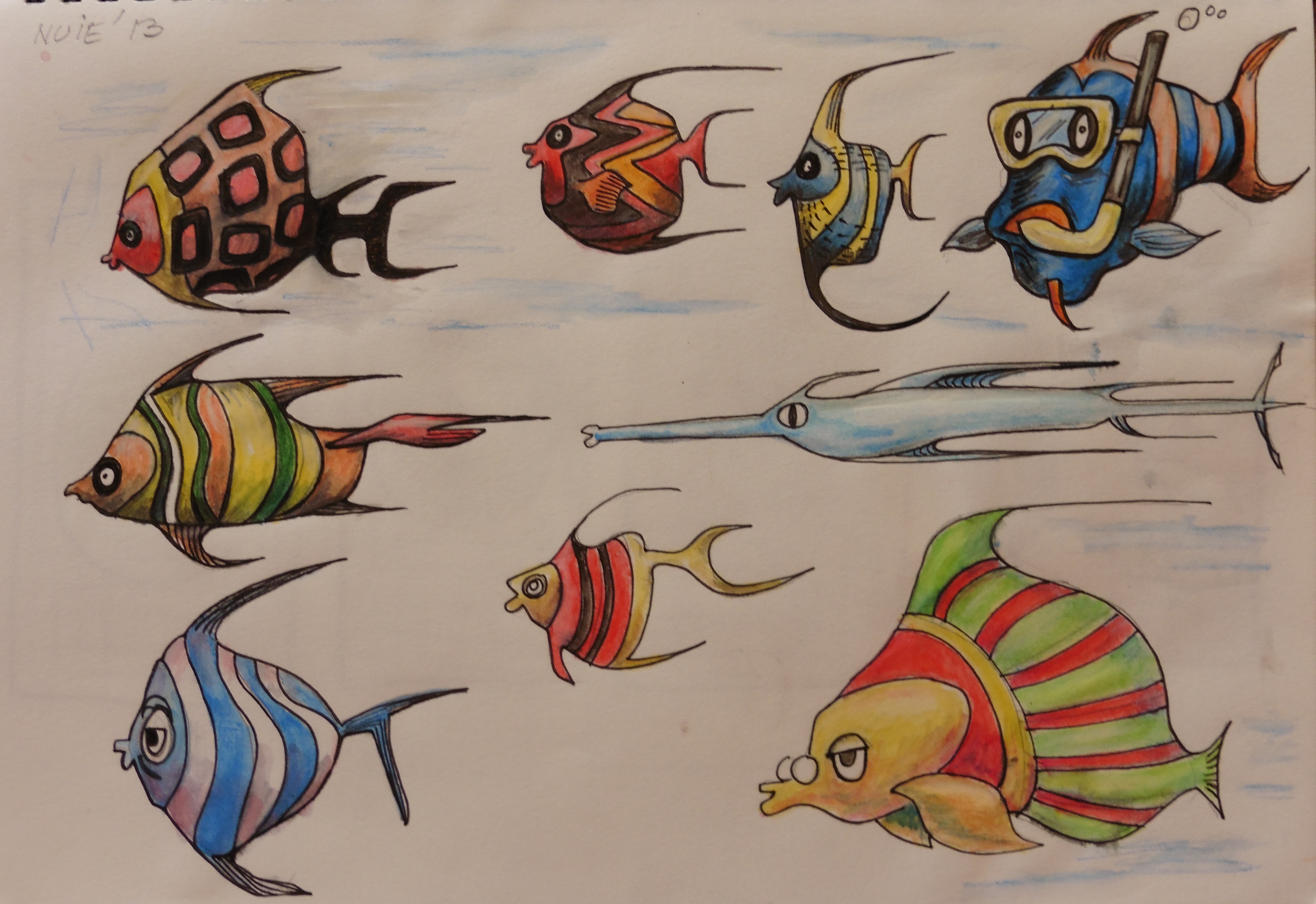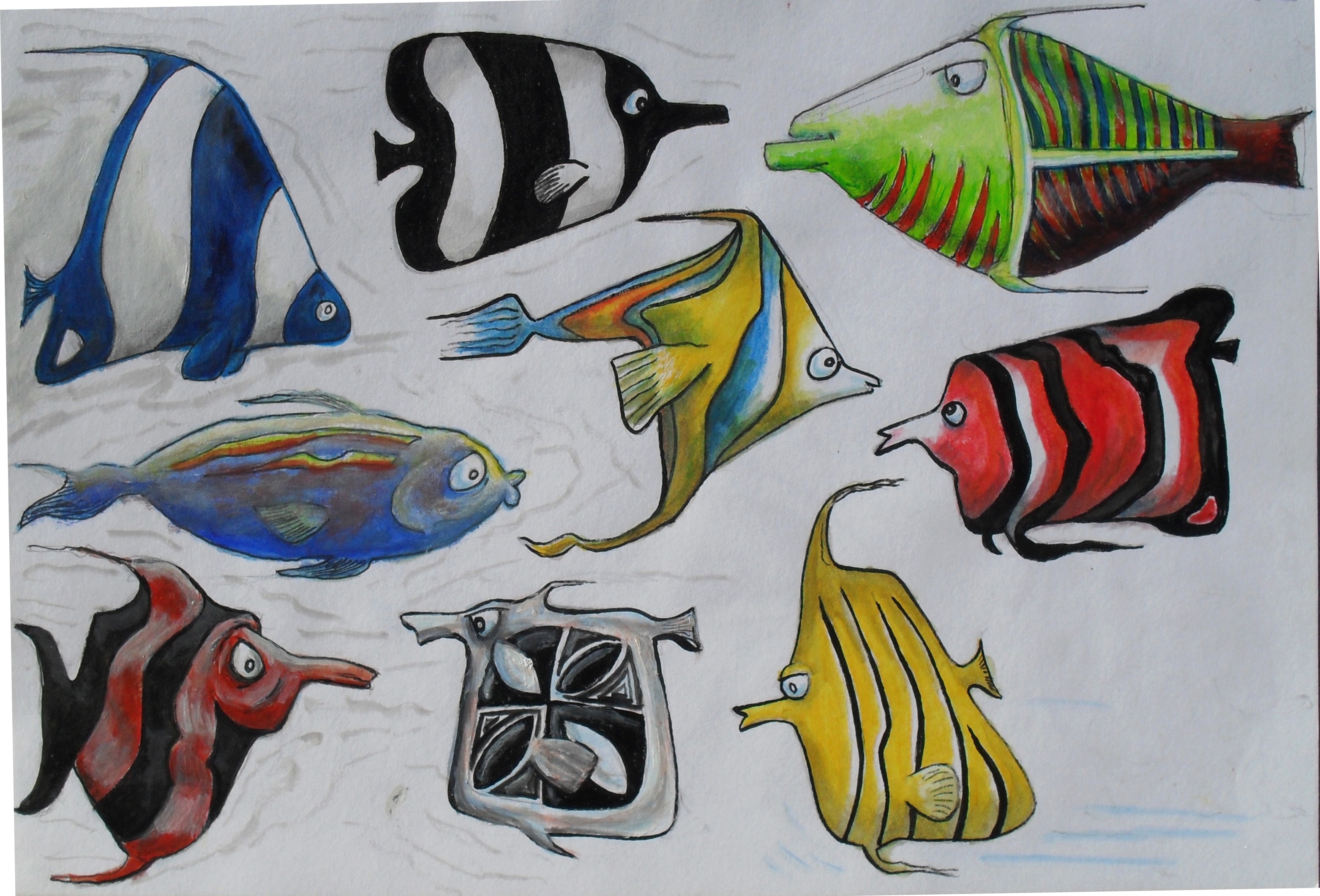 I tried to replicate some of the fish – but remembering the details was way too hard. So I drew some random shapes and made it up from there (some of them may even exist somewhere, who knows..).