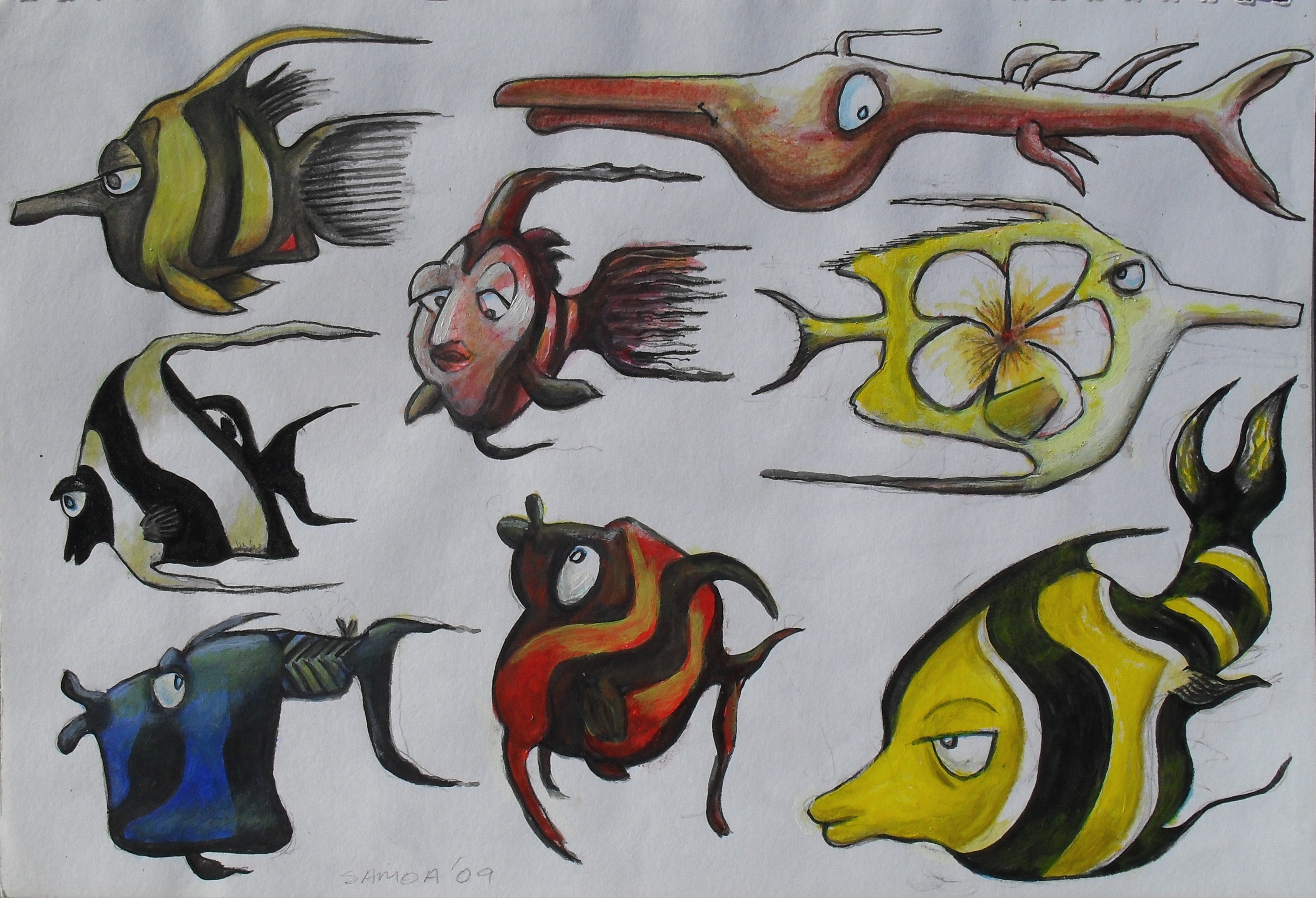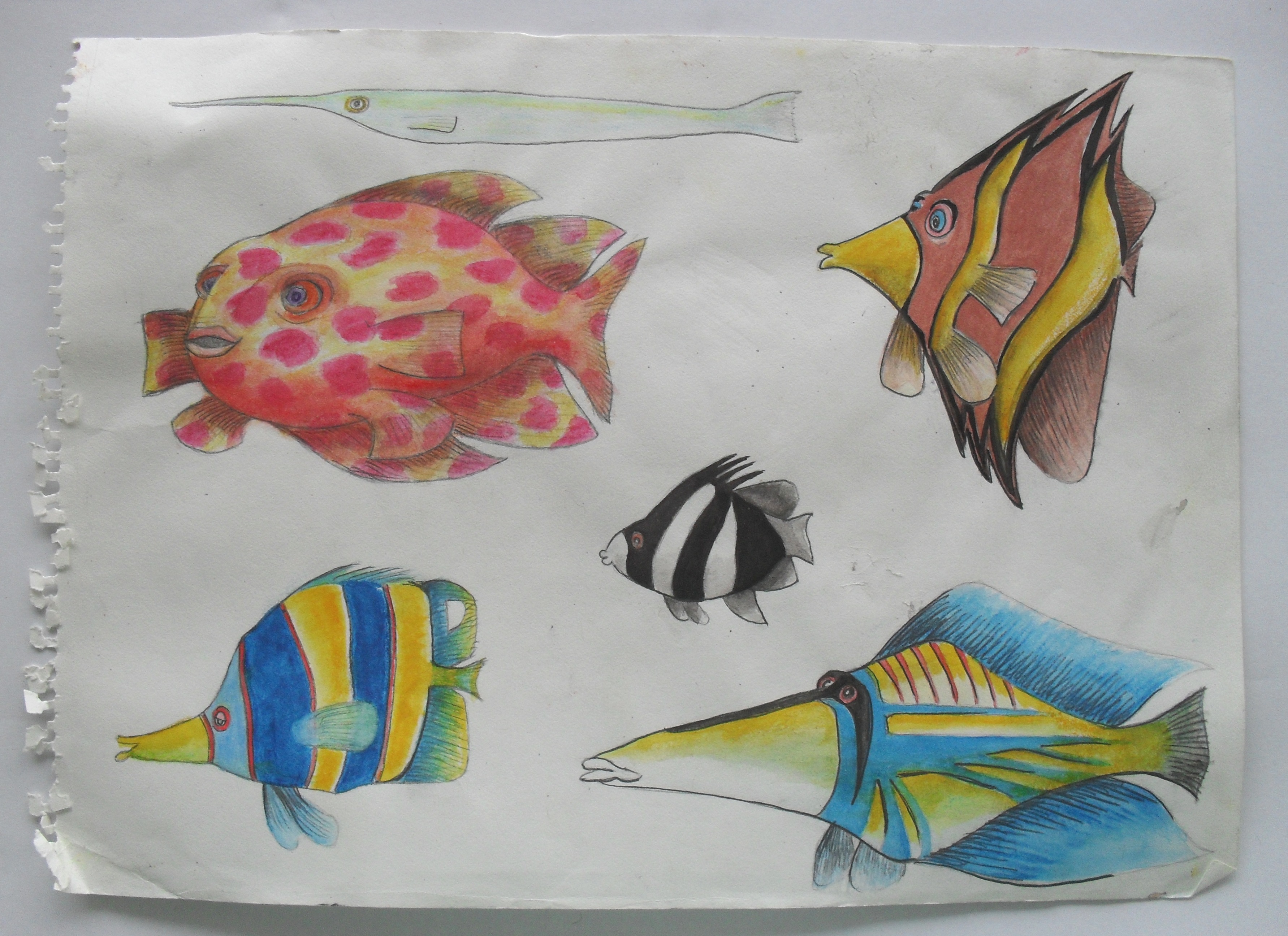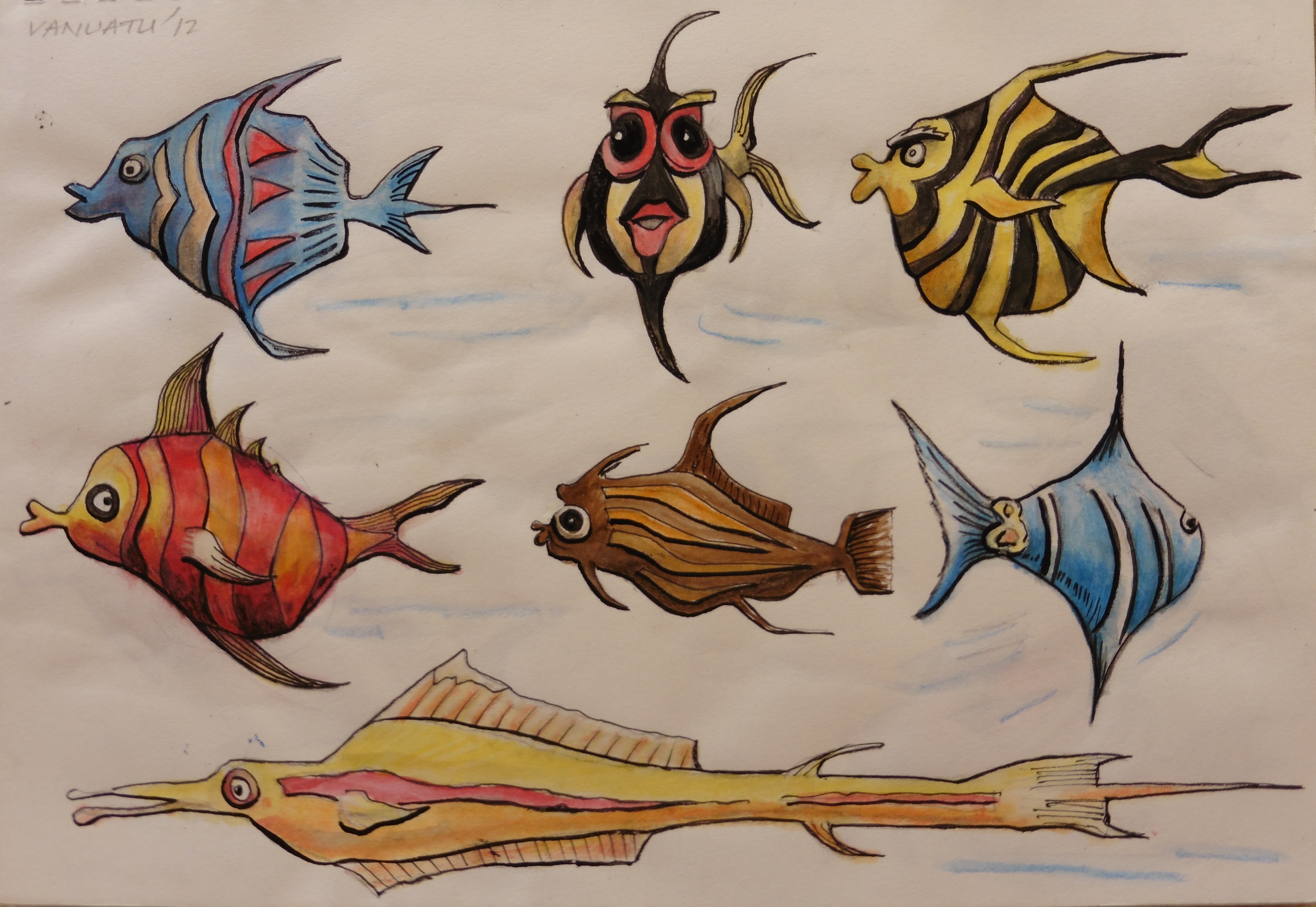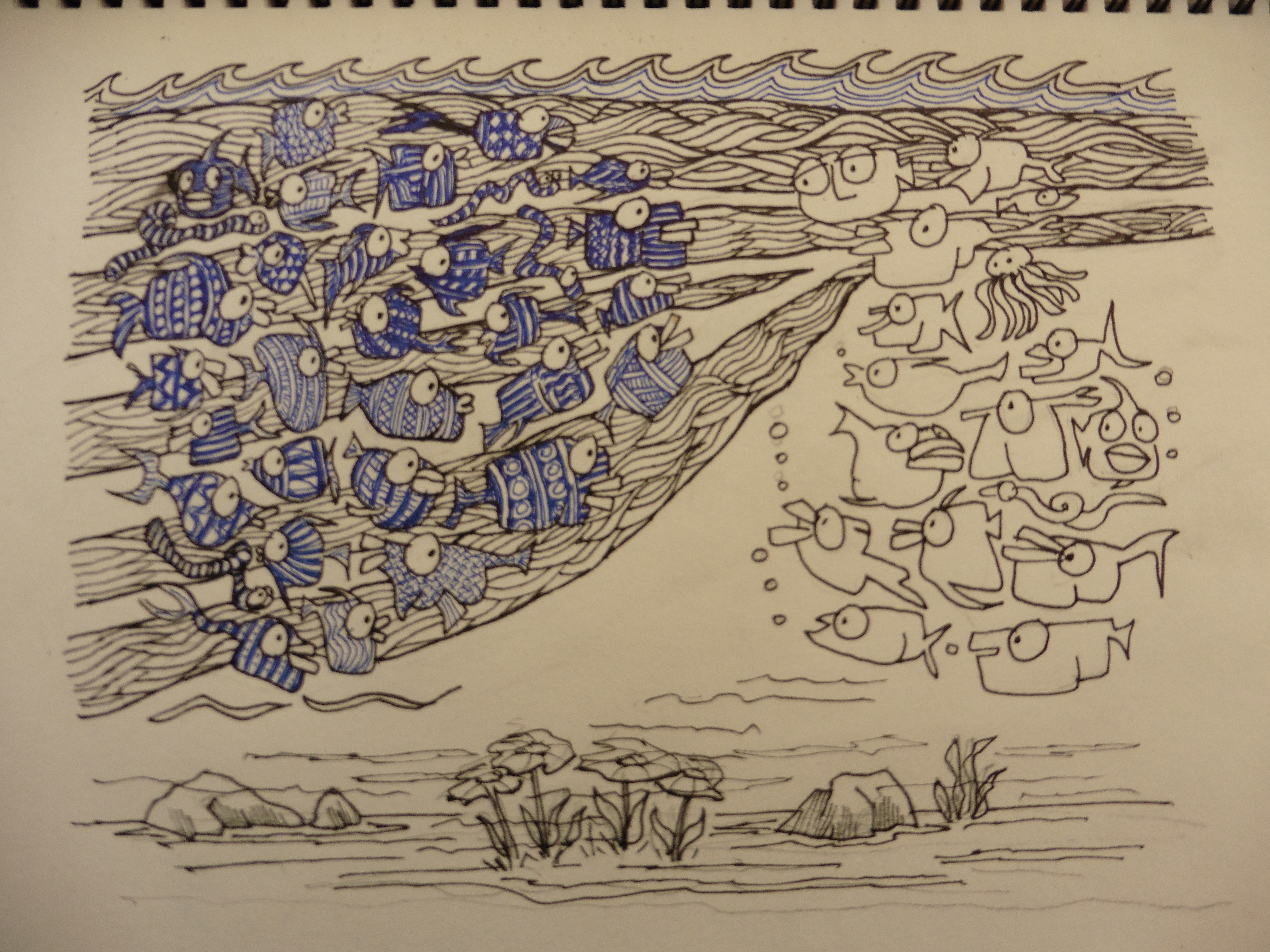 I tried to replicate some of the fish – but remembering the details was way too hard. So I drew some random shapes and made it up from there (some of them may even exist somewhere, who knows..).