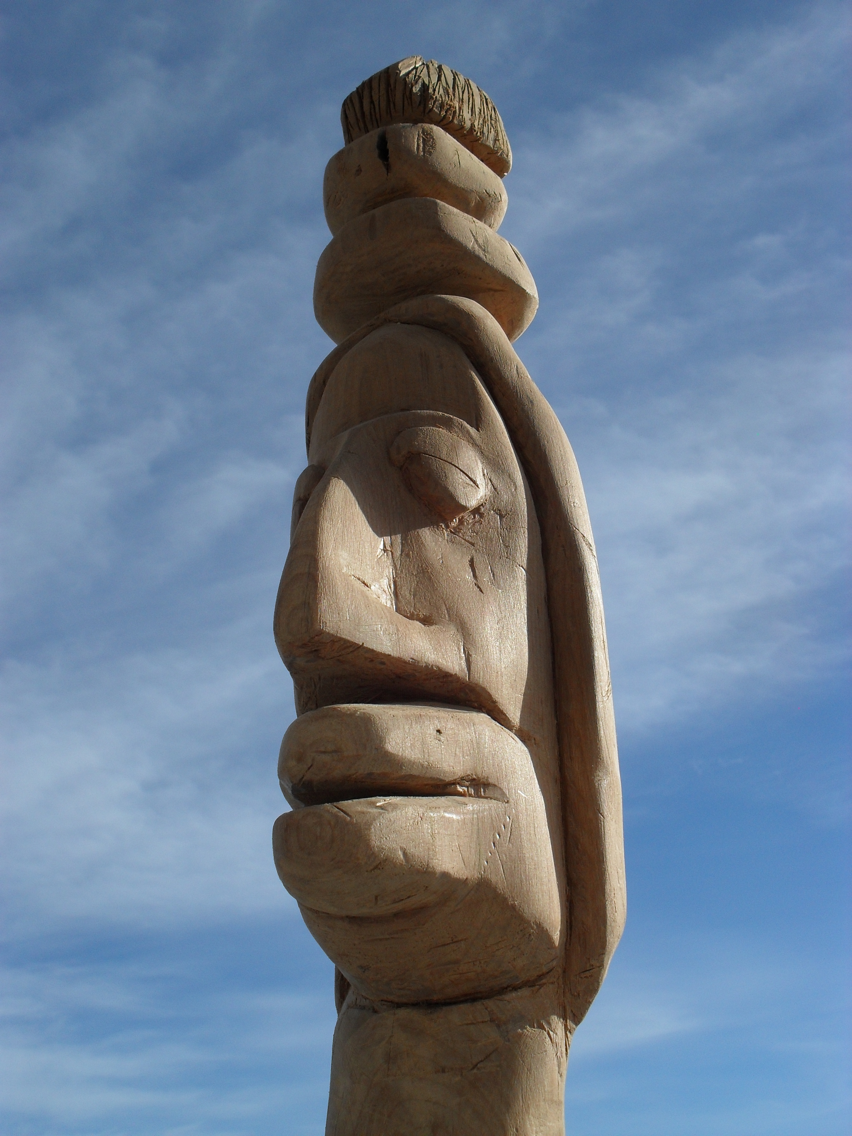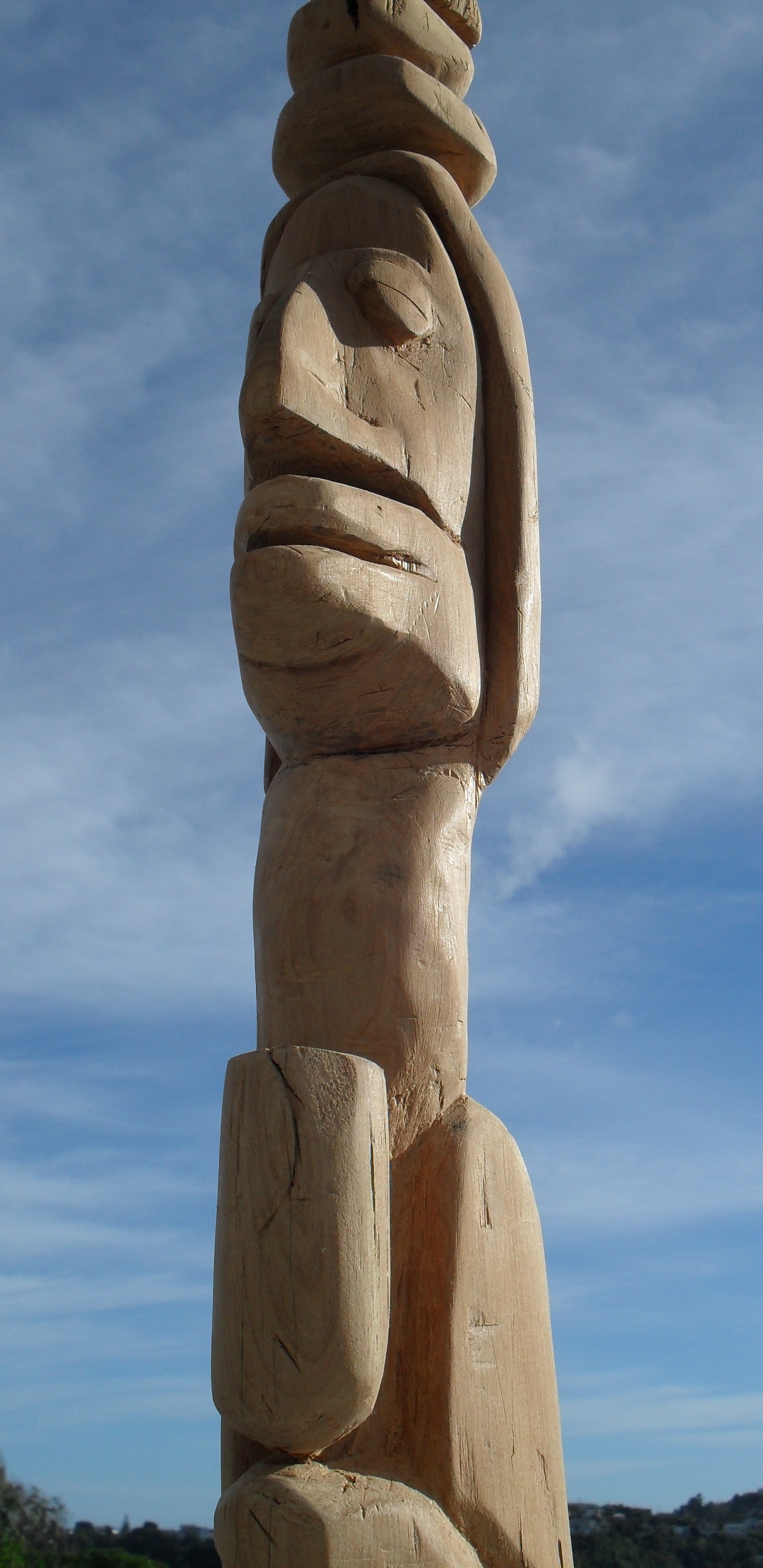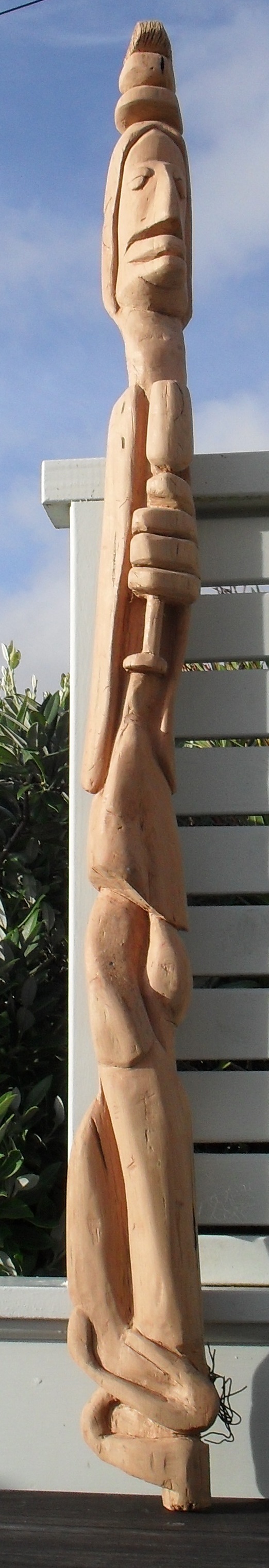Totara, 1.6m tall, now mounted on a wooden plinth.
