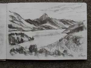 This is the view, sort of, from our accommodation in Dublin Street, Queenstown during a few recent ski seasons. I made these colours up as I went, trial and error, it seems to work but I couldn’t possibly replicate it, and why would I want to anyway.