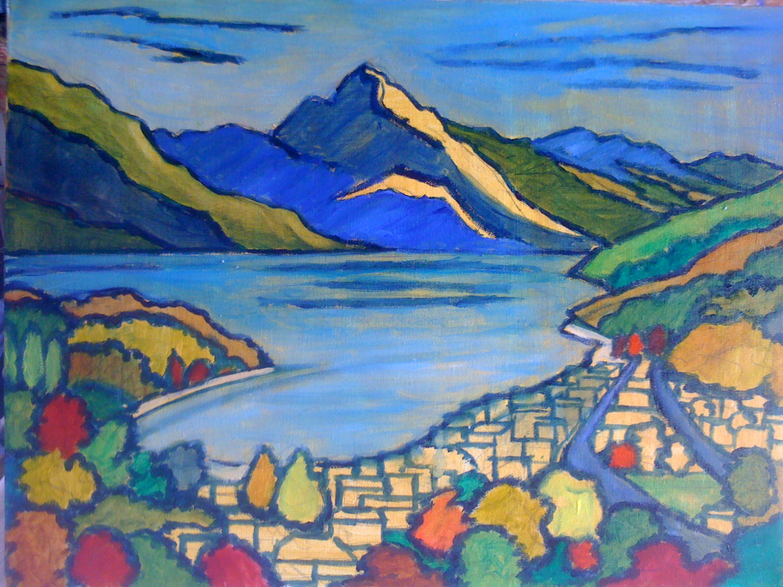 This is the view, sort of, from our accommodation in Dublin Street, Queenstown during a few recent ski seasons. I made these colours up as I went, trial and error, it seems to work but I couldn’t possibly replicate it, and why would I want to anyway.