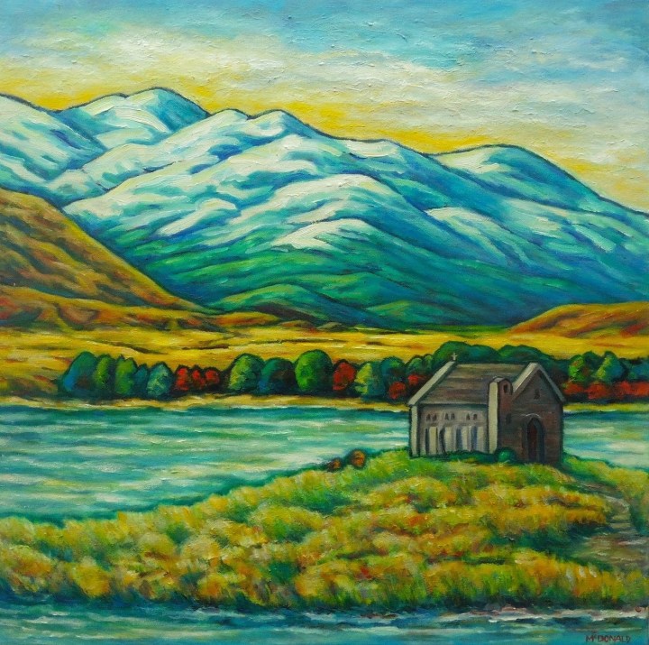The Church of the Good Shepherd, Lake Tekapo, NZ. Oils on canvas 750x750mm. Started 2017, “finished” 2024