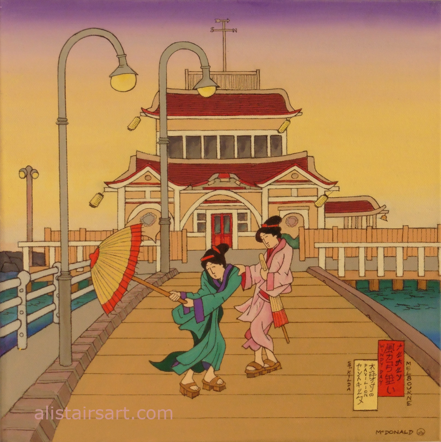 Click through on the 1st image to see a slideshow of 8 Melbourne scenes in the style of Hiroshige (meisho-e = pictures of famous places). I have tried to imagine how Hiroshige (1797-1858) may have shown these scenes if he was alive today.