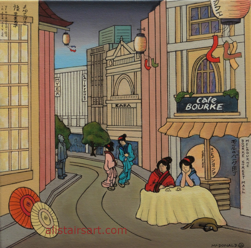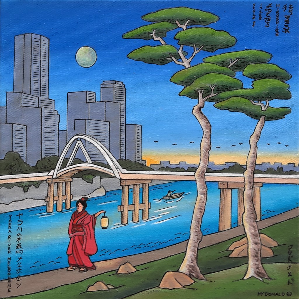 7 of 8 originals (acrylics on stretched canvas 12″x12″) were sold by Exhibitions Gallery, Wellington at my January 2022 “In the style of Hiroshige” exhibition – no3 (Moonrise at Princes Bridge) is available