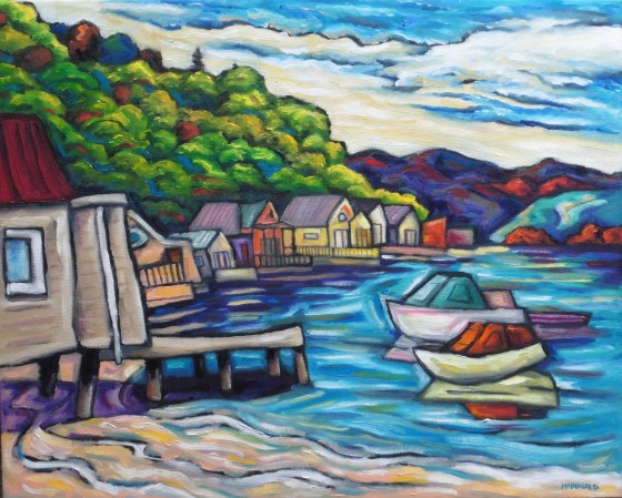 From the Freyberg Pool end of the wharf, painted contemporaneously with #3. Also acrylic 24″x 18″