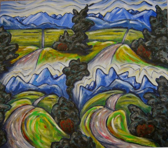 I started this in 2003. Its acrylic about 36’x36″. It was based on a view of the Southern Alps in … More