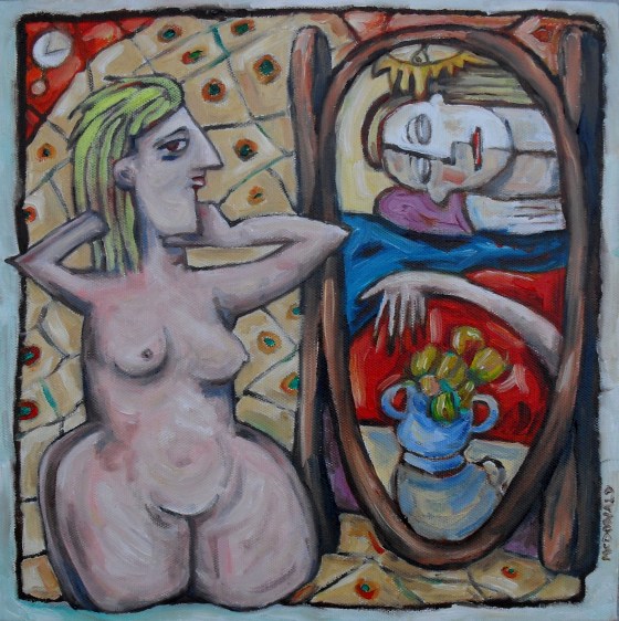 A small 12″x12″ oil on canvas which borrows from Picasso’s Girl before a Mirror, with hints of The Muse and … More