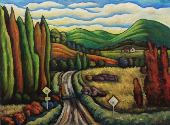 Side valley road off Malaghans Road, near the turnoff to Coronet Peak skifield, late summer with the hay done. Oils … More